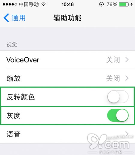 第一個我們要用到的功能是反轉顏色和灰度。打開開關即可使用,灰度和反色都非常適合在暗光條件下使用,灰度在非常時刻還能節省電力噢!