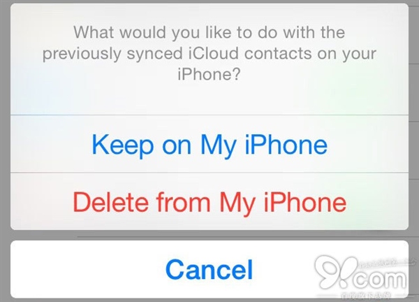 注:關閉「通訊錄」開關時你會看到一個確認信息,詢問你「是否在 iPhone 上保留聯系人」,此時選擇「從我的 iPhone 刪除」。