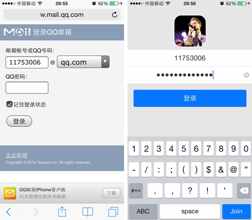 舉個簡單的例子,我們先在iOS8的Safari浏覽器裡用QQ賬號和密碼登陸過QQ空間或是QQ郵箱,那麼用戶的這個QQ號和密碼已經儲存在Safari的自動填充中,當用戶想要登錄iOS8系統的QQ應用時,應用可以直接獲取Safari中的信息,用戶無需麻煩的輸入。