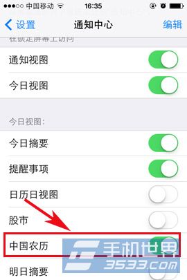 3)待安裝後點擊“設置”,然後進入“通知中心”。大家就能在通知中心看到“中國農歷”的插件了,在“今日視圖”裡點擊開啟該“中國農歷”即可。