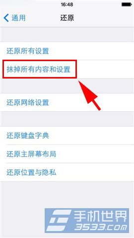 2)拉到最下面選擇【還原】,點擊【抹掉所有內容和設置】。