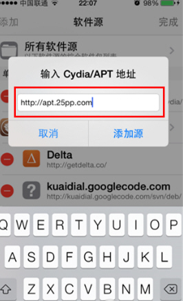 二、點擊【軟件源】-【管理】-【添加】--輸入源地址:apt.25pp.com -- 添加源: