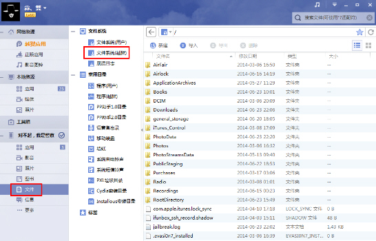 五、安裝完成之後重啟一次設備即可正常顯示【文件系統(越獄)】了:
