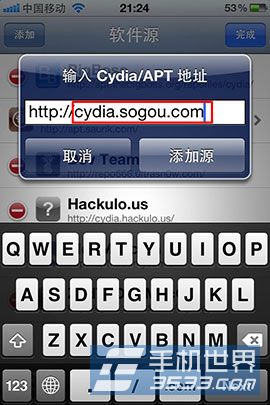 2)點擊右上角“編輯”,點擊“添加”,在添加源中,輸入cydia.sogou.com ,點擊“軟件源”