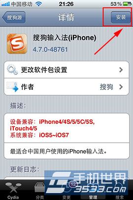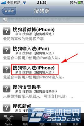 3)當完成之後會返回軟件源列,表點擊“搜狗源”,找到搜狗輸入法(iPhone)字樣一欄,點擊進入