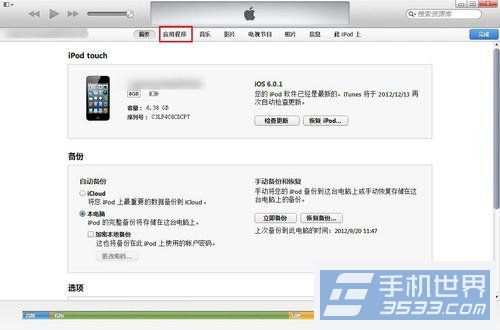 3)然後在【itunes】上點擊應用程序。