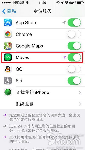 定位服務也是很耗電的一個功能,如果有的App不斷的獲取你的位置(設置——隱私——定位服務——有著紫色箭頭的App代表現在正在獲取你的位置),這些功能也會耗電;如果沒有必要,就關掉它吧!