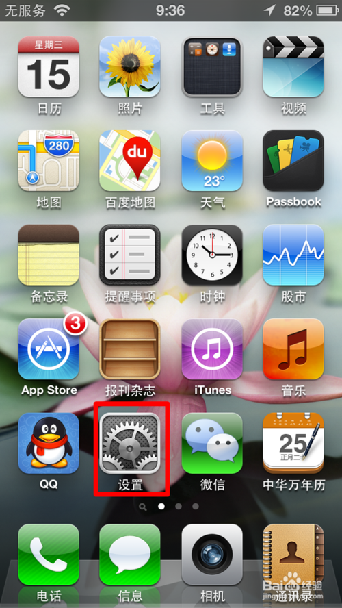 在iphone5手機 上恢復出廠設置,首先打開設置,