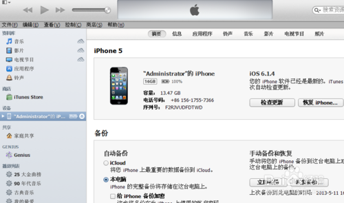 將iphone5連接電腦,用iTunes 恢復出廠設置,
