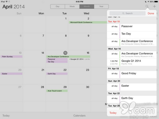 立刻會彈出一個可以滾動的列表面板,上面顯示了所有你已經添加到日歷的日程事件。