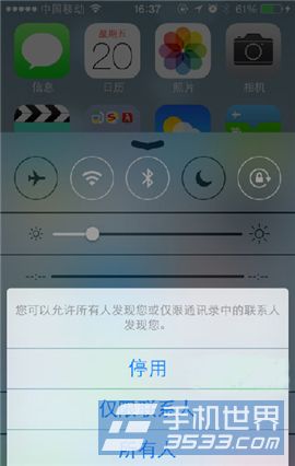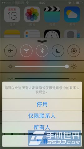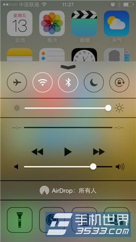AirDrop被集成在控制中心裡,在任何點亮屏幕的情況下,從屏幕底部向上拉激活控制中心,點擊AriDrop即可開啟。