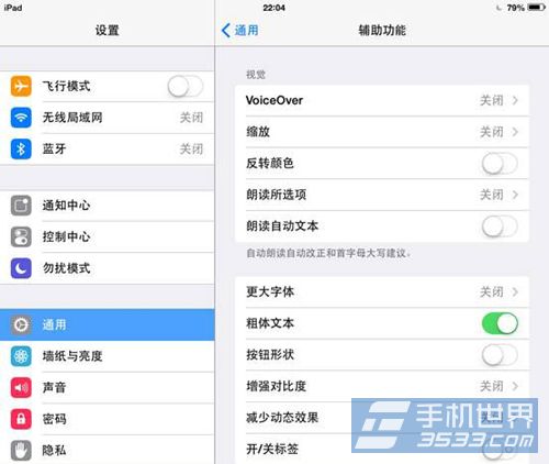 2)在【輔助功能】頁面,找到【粗體文字】,點擊打開右側的開關按鈕。