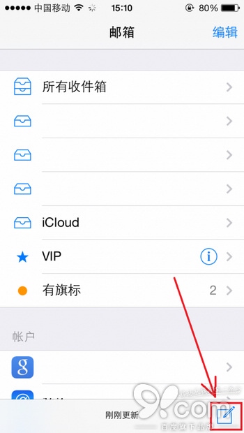 在郵件界面,長按寫郵件按鈕,就能夠進入到草稿欄,你可以繼續編輯之前未完成的草稿。