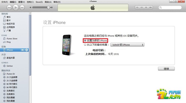 4.勾選設置為新的iPhone,並且點擊繼續。