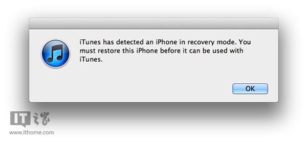 步驟四、重新用數據線連接PC,這時iTunes將檢測到你的iOS設備正處於恢復模式(如下圖所示),然後選中你的iOS設備,同時按下“Shift”鍵+恢復iPhone按鈕。