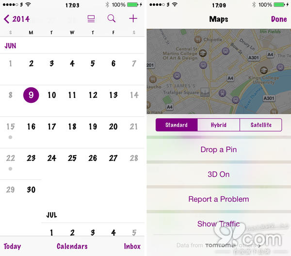 有開發人員在 iOS 8 發現一個隱藏的設定,名為 “Alternate UI” (可選擇界面)。啟動之後 iOS 界面就會大大改變: 按鈕和其他界面元素會變成紫色或橙色,連字體也改變了。