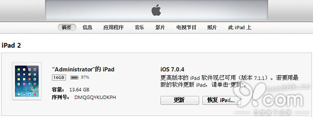 3.iTunes 會彈出對話窗,然後選擇 iOS 7.1.1 固件