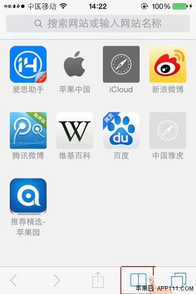 第一步,在Safari浏覽器頁面,點擊下方的書簽按鈕。