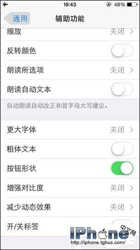 如果你不喜歡iOS 7的赤裸按鈕,如果你很難發現在導航欄的操作按鈕,如果你渴望iOS 6風格的開關按鈕,那麼你會很高興的發現iOS 7.1會滿足你的期望,沒錯,就是隱藏在輔助功能內的按鈕形狀。