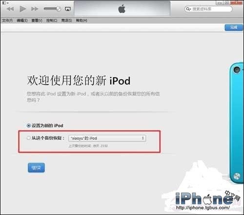 6、之後可在iTunes上選擇“設置為新的設備”或者恢復“之前備份的數據”激活設備即可。