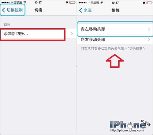 3、最後我們可以設置需要搖頭控制的功能即可,這裡主要可以實現將搖頭動作設定為回到主頁、啟動Siri、通知中心、應用切換、音量控制等等,以下以設置遙控控制相機設置為例,如下圖所示: