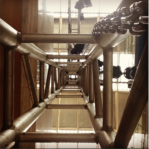 這是一個掛音響的高架。使用前置攝像頭放在中心位置,反復調整使其圖像中心對稱。