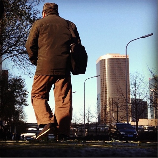 當鏡頭貼近地面,行人看起來比遠處的國貿還要偉岸。