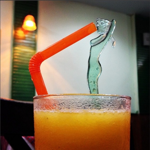 或者將吸管對准攪拌棒的裸女口中。