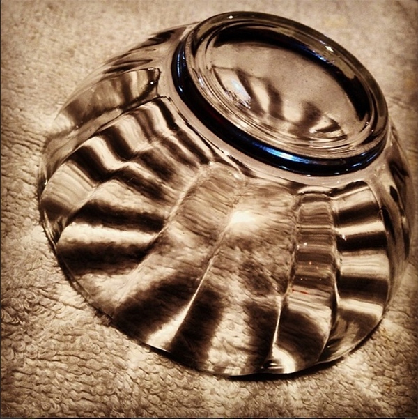 帶有稜邊的玻璃碗,會反射出奇異的光影。