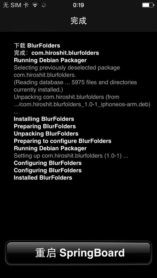 3.安裝BlurFolders並重啟Springboard,便會自動安裝完畢。