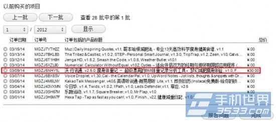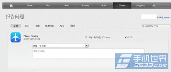 4)找到其中含有你需要退款產品的訂單打開,通常一個訂單會包含當天購買和下載的所有應用或游戲包括免費的在內。找到了需要的訂單之後,點擊下方的“報告問題”。之後會在訂單列表的每一個條目後面多出一欄報告問題的鏈接,點擊你需要退款的那個條目就會跳轉到官方網站的問題反饋頁面。