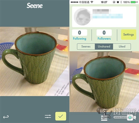 拍下第一張照片以後屏幕上會出現一個八邊形,然後根據八邊形上的箭頭提示移動手機,在成功以後八邊形會逐漸變成綠色,等全部變成綠色以後就會自動生成3D照片了。由於3D照片的特殊性,用《Seene》拍的照片並不能直接分享給別人,只能叫朋友來注冊《Seene》的帳號或者直接給他看手機啦。