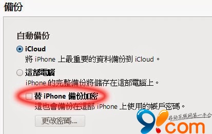 針對有這個困擾的朋友,Apple 在 iTunes“摘要”面板的備份中設有一個“替 iPhone 備份加密”功能,你可以設定密碼來保護備份資料。將來如果想從這個加密備份恢復資料的話,必須要輸入密碼才行。如果不小心忘記密碼,就只能執行完整軟件恢復,選擇將 iPhone 設成新設備,所以健忘的人勿用。