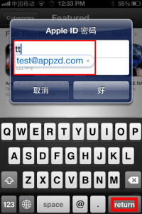 8.添加完詞組我們來測試一下,打開iTunes登陸框鍵入剛剛設置的快捷命令,系統會自動顯示用戶字典裡相對應的詞組,