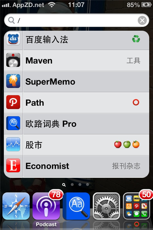 Ios教程網 >> IOS教程 >> 蘋果手機教程 >> iOS7使用搜索快速查看已安裝程序