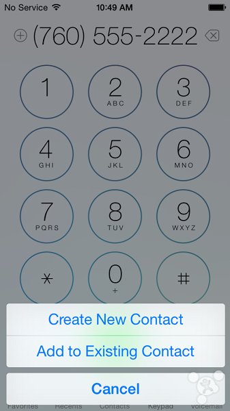 電話撥號鍵盤有了小小的改動。在已輸入電話號碼下方的“添加到通訊錄”不見了,被替換成了已輸入號碼前方的一個“+”按鍵。
