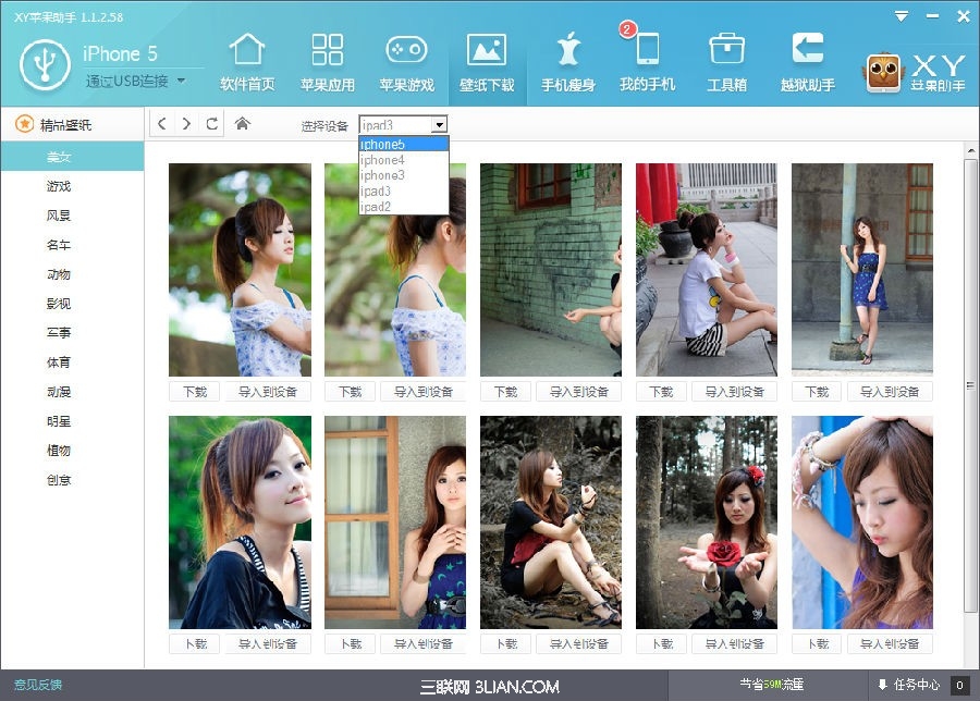 Ios教程網 >> IOS教程 >> 蘋果手機教程 >> XY蘋果助手壁紙下載功能