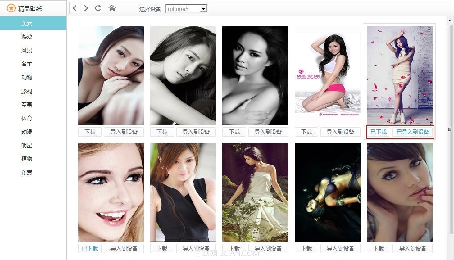 在看到自己心儀的圖片時,可以選擇直接點擊圖片下方的“下載”按鈕下載到本地電腦中。也可點擊“導入到設備”按鈕直接導入手機中。當下載或導入成功後,圖片下方的按鈕狀態也會改變為“以下載”,“已導入到設備”。