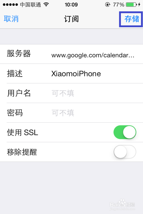 7、將從電腦上發送到手機上的日歷粘貼到服務器一欄,如圖所示