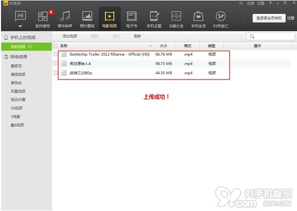 提示:快速上傳視頻另一種方法,直接拖拽視頻(mp4或m4v)到“我的視頻”空白處,就可以省略以上五個步驟咯~
