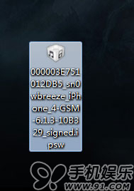 提示:【sn0wbreeze 雪花】降級工具制作降級固件時間稍長,請耐心等待!成功制作降級固件,將保存在桌面上以一串數字+英文開頭的降級固件: