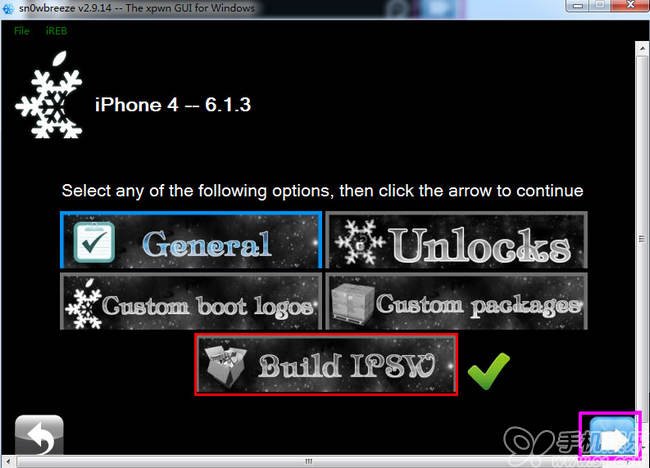 5.選擇【Build IPSW】—點擊下一步—【sn0wbreeze 雪花】降級工具開始制造的降級固件