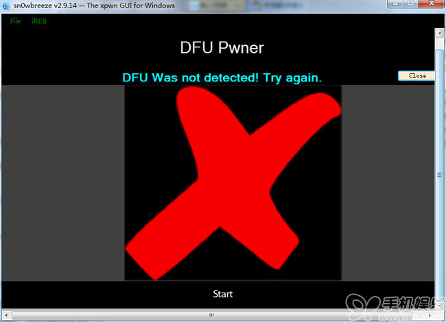 注意:引導進入DFU模式失敗,請點擊【Start】重復以上步驟。