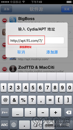 3.添加http://apt.91.com/7源地址