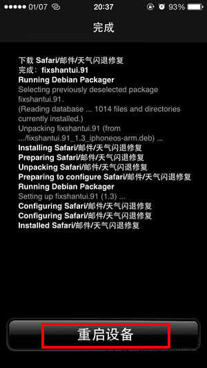 經測試,我們終於找到真正完美解決閃退的方法!並且重啟後不再閃退!如果你越獄後出現Safar/郵件/天氣/計算器閃退,那麼就請按照以下步驟操作,如果您沒有出現閃退問題,請勿操作。