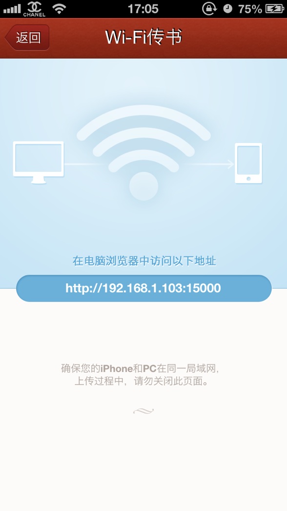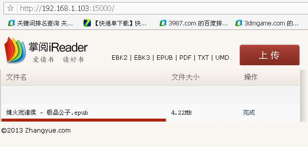 步驟三、在電腦浏覽器輸入掌閱iReader給出的傳書地址。