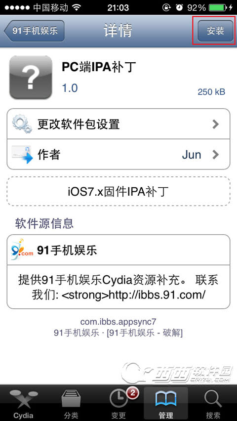 (已經添加【91手機娛樂】的用戶,請點擊Cydia -- 變更 -- 刷新或刪除【91手機娛樂】重新添加一次)