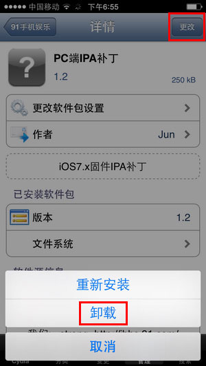 1、打開Cydia,進入【管理】—>【軟件包】,找到Appsync for iOS7(PC端IPA補丁)