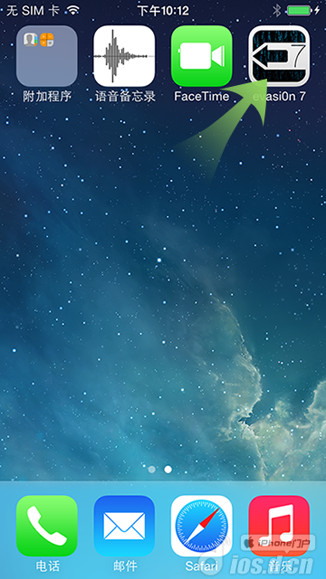 1、iOS7越獄過程中打開手機上的“evasi0n7”閃退