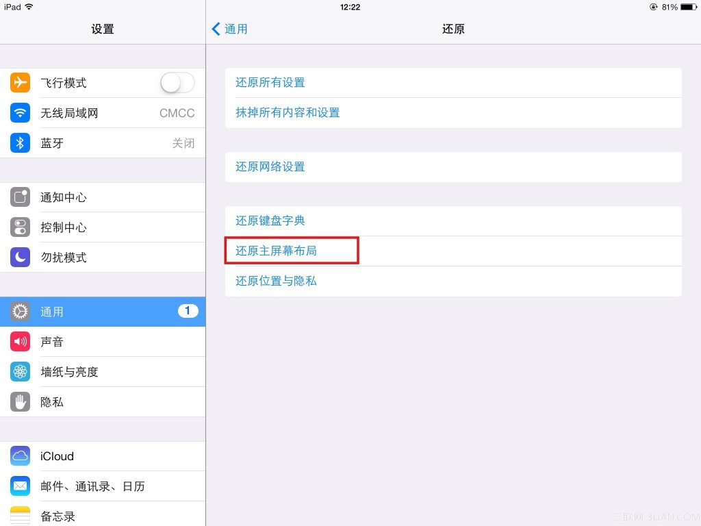 1、打開【設置】-【通用】,將頁面移至最底端點擊“還原”